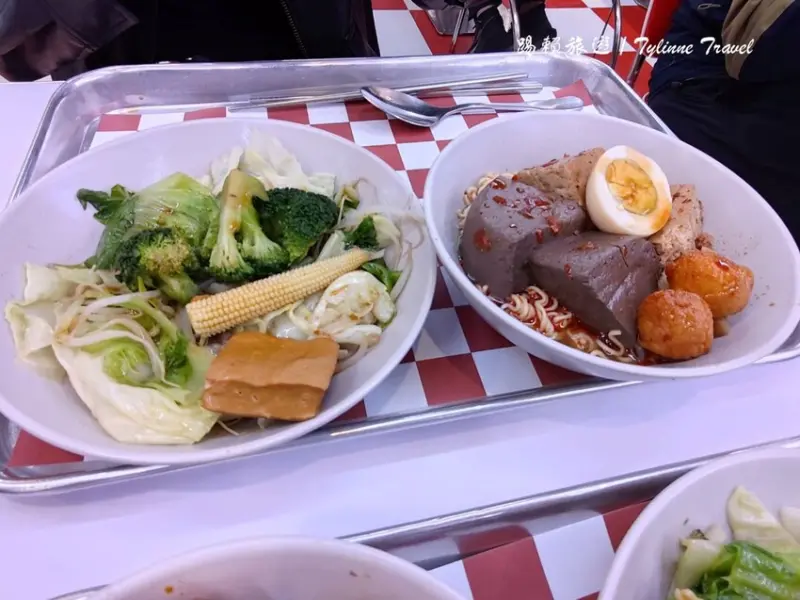 第一份餐點是「麻辣鴨血豆腐+王子麵」,這裡的餐點都是一碗滷味+一碗新鮮蔬菜,讓顧客可以吃得美味又吃得健康
