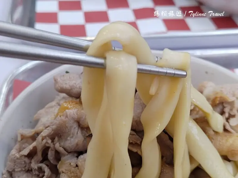 刀削麵麵條厚實吃起來非常有咬勁,咀嚼過程中麵香和滷汁香不斷散發出來