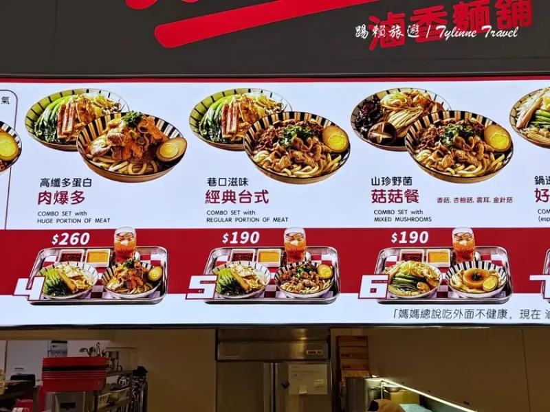 餐點實際的照片在門口櫃台上的招牌有提供,可以讓點餐或是外帶的顧客了解實際的配菜