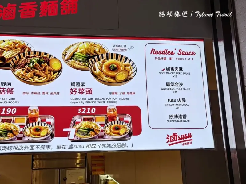 「滷susu滷香麵舖」是一家主打創新滷味的餐廳,結合拌麵與新鮮蔬菜的特色餐點,有別以往常見的配菜都是用滷汁熬煮,這裡是以健康川燙的方式讓蔬菜的原汁原味呈現出來,搭配招牌滷汁熬煮出來的配料,呈現一碗健康清爽的蔬菜以及一碗香濃入味的主餐,拌麵有加入特製香辣椒麻醬汁,吃起來香麻帶勁同時兼具口感與味蕾的交織,讓滷味呈現不同的樣貌,加上店面位置進駐的在大巨蛋,在演唱會以及棒球賽舉辦時更是成為超人氣的餐點。