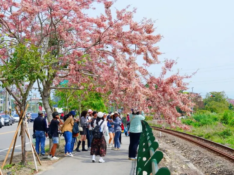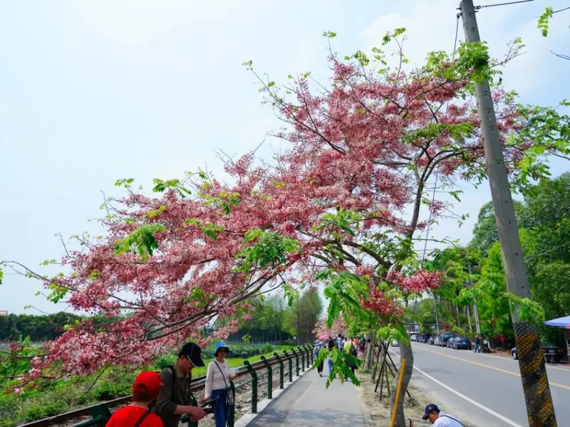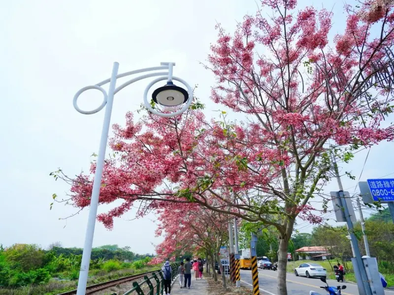 黃花風鈴木季結束後,緊接著就是花旗木的浪漫花季!這次來到彰化二水,這裡可是全台花旗木最美的地方之一,特別是沿著鐵道的花旗木步道,每年盛開時,粉嫩花海與火車交織出超夢幻畫面,讓人忍不住狂按快門!不過這次來訪時,花旗木大概已經開六成左右,估計再等一週,就能看到滿開的壯觀美景。想拍火車穿越粉色隧道的夢幻畫面,趕快準備安排賞花之旅吧!
