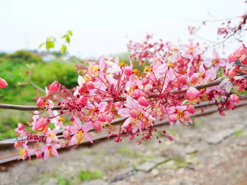 花旗木真的超美!現在雖然還沒滿開,但已經能感受到那種浪漫氛圍,讓人更加期待盛開時的壯觀景象~等到整片粉色花海綻放,搭配火車行駛的畫面,肯定夢幻到不行!
