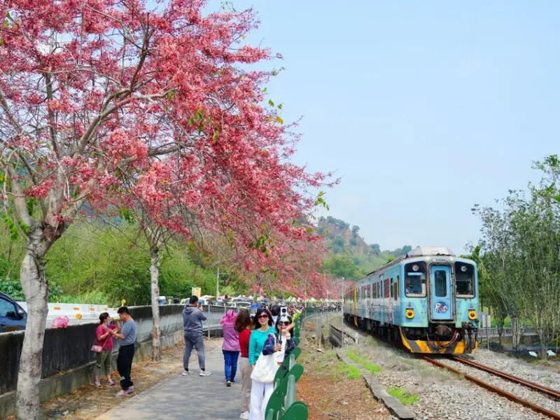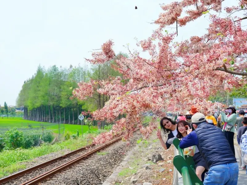 來二水花旗木鐵道,大家最想拍的就是火車穿越粉色花海的夢幻畫面!因為這條鐵道剛好位在二水站與濁水站之間,所以建議搭配台鐵時刻表,抓準火車經過的時間,這樣就能拍到最完美的畫面!想要拍攝的人可以提前查好班次,選個好角度,耐心等待火車進站,捕捉這一年一度的粉色奇蹟~