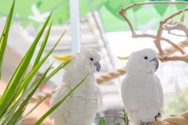 ▲▼館內展示各品種鸚鵡,互動氛圍濃厚。