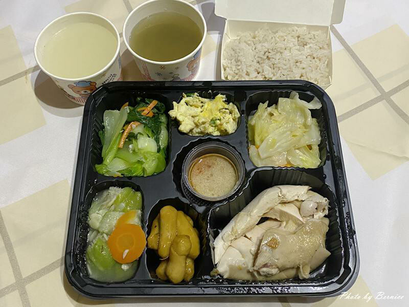 採用台灣溫體雞搭配五種當季食蔬,一份雞飯、一碗雞湯和甜湯,再加上特製薑蓉醬與辣椒醬,這是平台限定套餐,現場套餐至多三種配菜,瞧瞧~~是不是透過平台下定不但少了現場等待時間,餐點還更為豐富