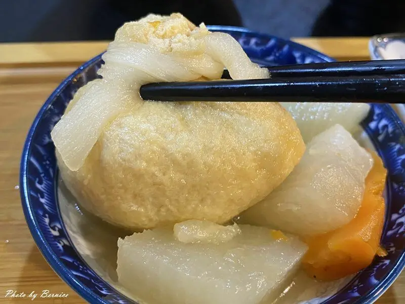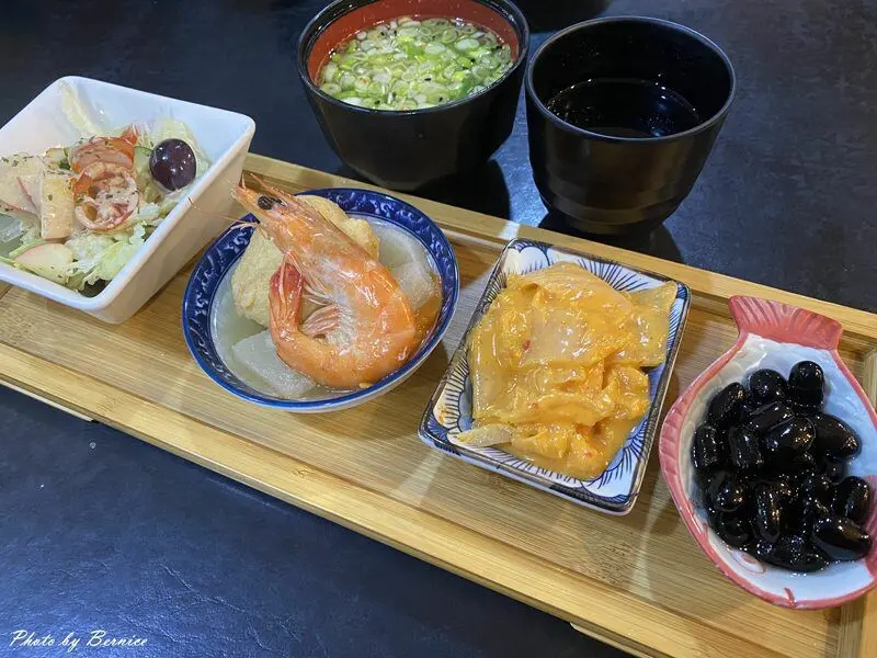 前菜共有四道~油醋沙拉、關東煮、黃金泡菜及糖漬黑豆,泡菜這道會有所變化,有些同事是毛豆或海帶;沙拉相當清爽,關東煮量其實不少,福袋超好吃的,開心我是拿到福袋的