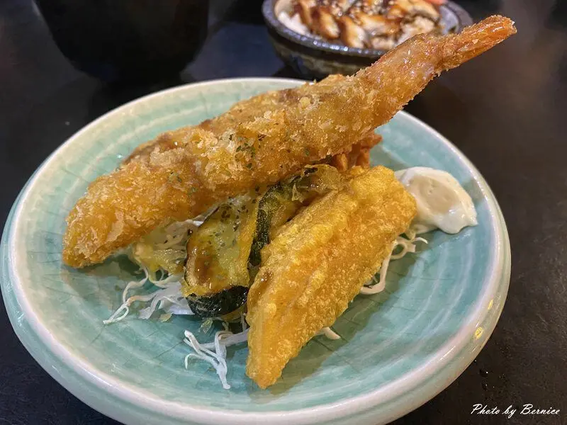 炸物份量超多,有節瓜、炸蝦、地瓜、唐揚雞及小豬排(魚排),我吃起來像豬肉,但同事說是魚,到底是什麼呢