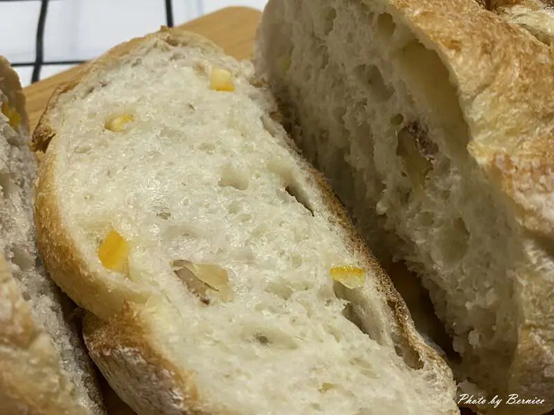 店裡有好多款軟法,我一直被這款給吸引,所以他跟我回家了;聞得到麥香,雖然切面桔丁與核桃看起來不太多,但入口後每一口都能咬到桔丁及核桃,帶著柑橘香氣整個口感大升級