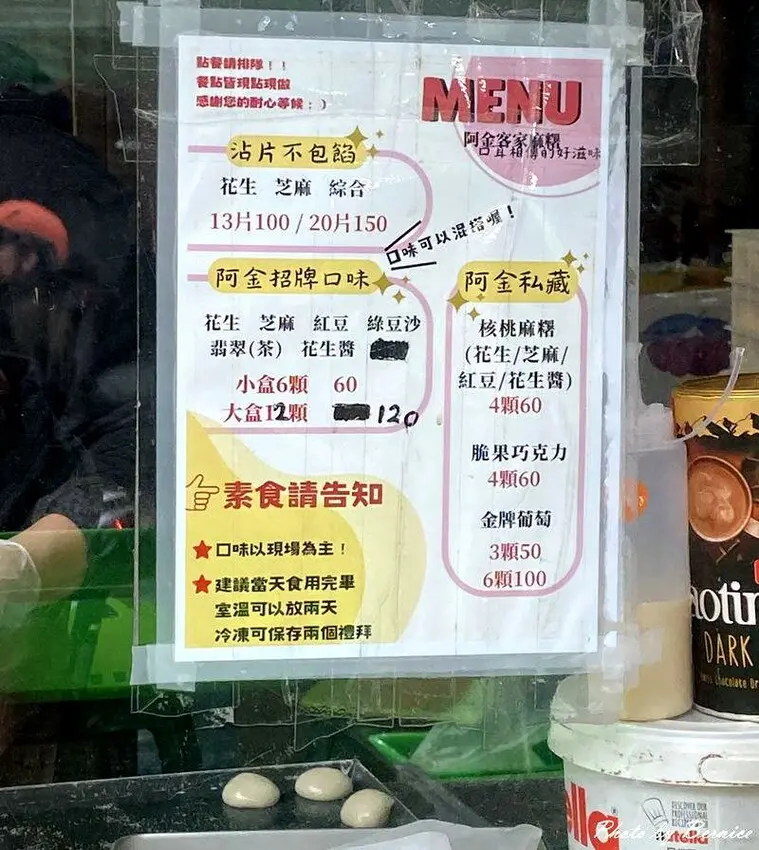 逛外送平台發現店家外,找手機也能獲得不少美食好康;阿金客家麻糬就是划手機時看到朋友推薦,查看了出攤時間立馬動身,可惜我來晚了,私藏系列現場已無貨,帶著遺憾後知曉要先預約,結果遇上修復中所以暫停,不知四月我是否能品嚐到私藏系列