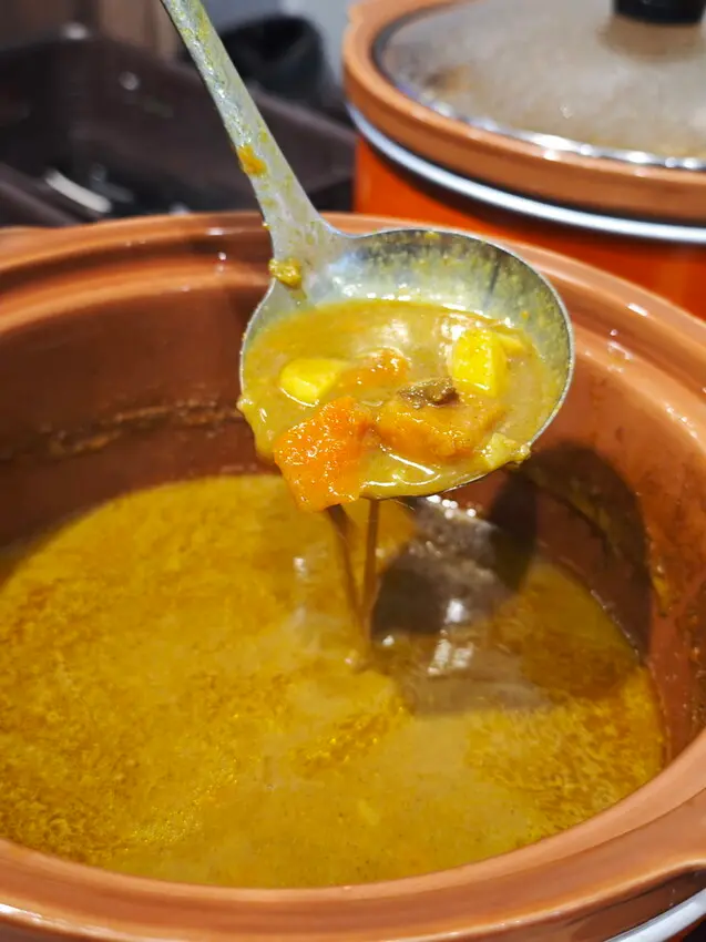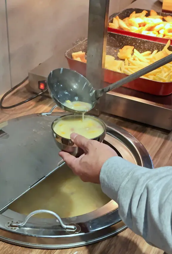 把酥皮放進濃湯哩,變成酥皮濃湯。