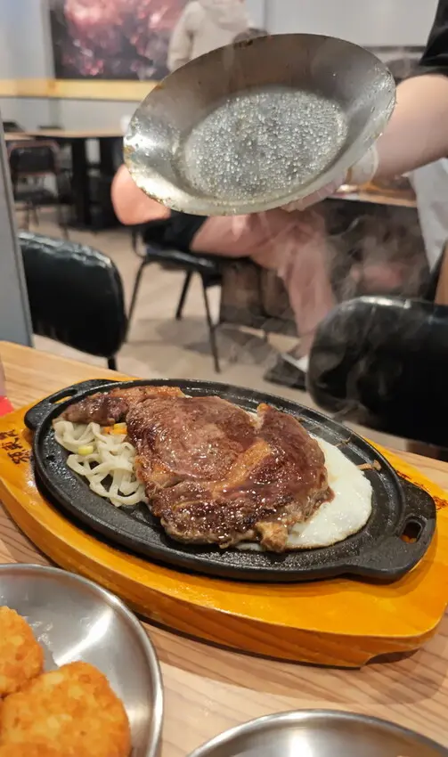 店員掀蓋的瞬間,撲鼻的香味、鐵盤上滋滋作響的聲音,刺激著食慾。