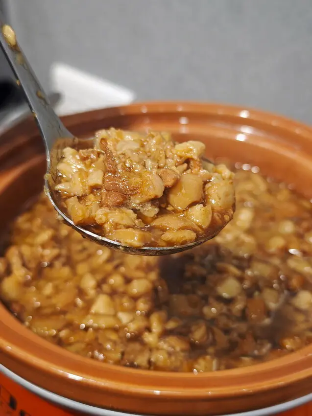 肥瘦適宜的肉燥,滷汁香氣撲鼻,聞得到又香又鹹的醬油味,吃起來卻不鹹,鹹香入味的滷肉燥淋到熱騰騰的白飯上,香Q滑嫩的滷肉燥、誘人的滷汁,顆粒分明的米粒,吃起來真是讓人心滿意足。