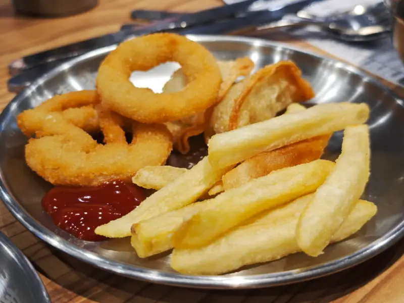 有薯條、炸水餃、洋蔥圈、酥皮(每次不同,依店家當天出餐為主)。