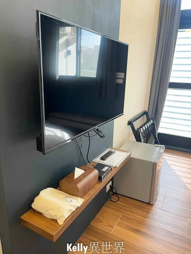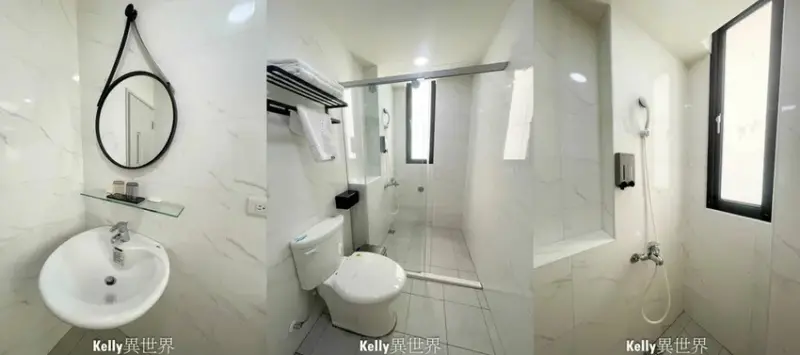 衛浴部分是做乾濕分離的,空間也是超寬敞,設計簡單又大方。而且還有對外窗,不會覺得悶熱。白天打開是還好,但晚上就不太建議打開,因為可能會跑蚊子進來。備品方面也不隨便喔,有吹風機、大浴巾,蓮蓬頭的水壓也很剛好。房間空間真的是超級大。還有附贈行李架、小冰箱、簡約衣架。熱水壺也是基本的配備都有,整體上真的考慮得很周到。雙人床很大張又很舒服,充滿溫馨的氛圍。