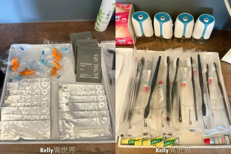 Check in的大廳除了辦理入住登記之外,還有自助式的備品可以拿,像是耳塞、插電蚊香、牙刷牙膏、防蚊液等等,是不是很周到!當然也有一些小餅乾、奶茶包、咖啡包可以自己泡來喝。進到民宿裡面要換室內拖鞋喔,鞋櫃蠻乾淨的,而且每雙拖鞋都有清楚標示房號,完全不用怕會穿錯。