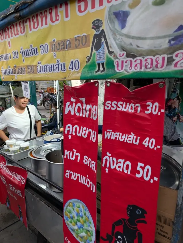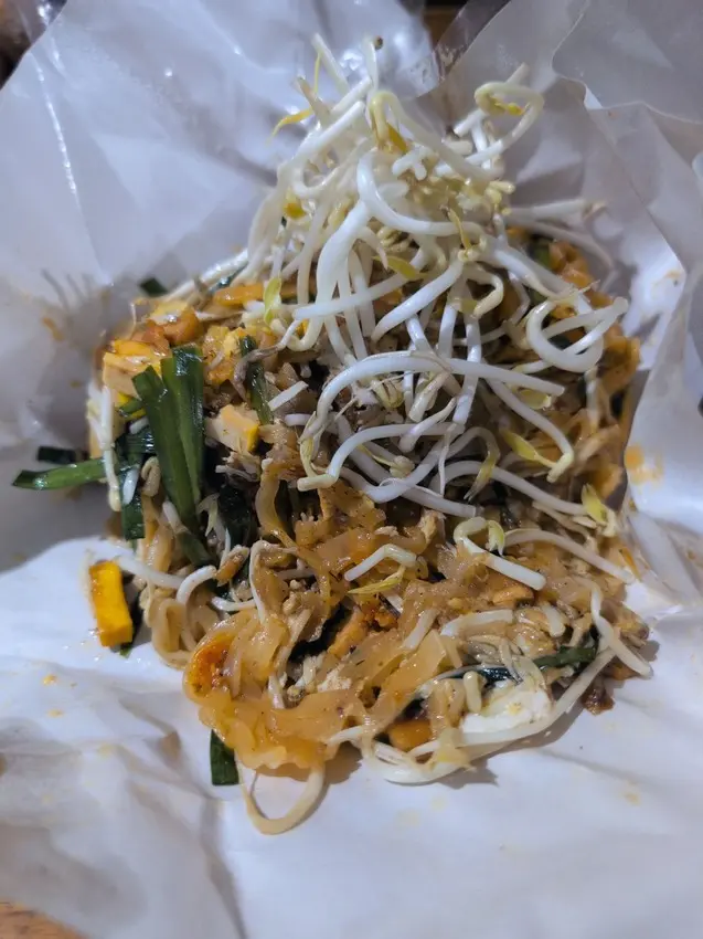 另一攤的炒Pha Thai香味也是讓我們在攤位前看得目不轉睛,每個人看著老闆現炒的熟練模樣,馬上人手一包外帶上路!