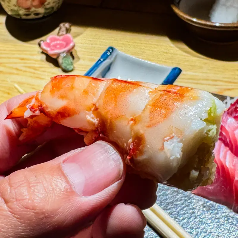 熟明蝦 200元這個熟明蝦壽司看起來很飽滿,顏色也很鮮亮,是很經典的壽司選擇。 明蝦煮熟之後呈現出誘人的橘紅色,光澤感十足。厚實的蝦肉蓋在醋飯上面,讓人看了就流口水。熟明蝦的肉質很緊實又Q彈,保留了蝦子本身的鮮甜味。跟醋飯搭配起來非常和諧,口感很有層次。 這道壽司很適合喜歡吃蝦類料理的人。熟明蝦Q彈的口感和鮮甜的味道非常吸引人,會讓人忍不住一口接一口。這款熟明蝦壽司看起來飽滿且色澤鮮亮,是一道經典的壽司選擇。![]()