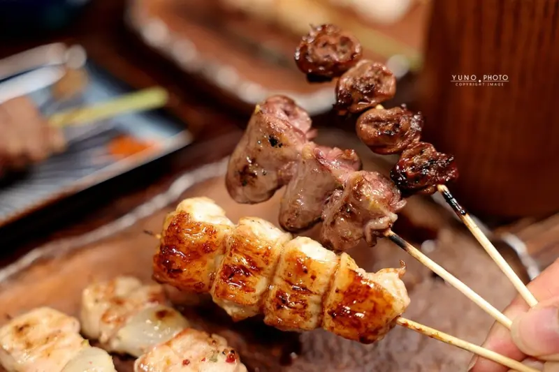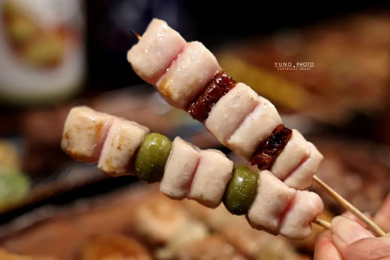 珍珠洋蔥腿正則是腿肉的嫩搭配洋蔥的甜,根本是燒鳥版的糖心組合,糖醋蕗蕎腿正酸酸甜甜超開胃,有種日式照燒的感覺,紅心橄欖里肌(三到五分熟)口感更有層次,橄欖的香氣很迷人,是YUNO當天的驚喜Top 3!