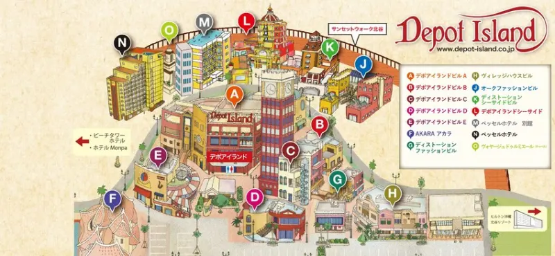 美國村分三大區域,美食比較多的是Depot Island,可以在這區先找美食吃後再去逛逛~