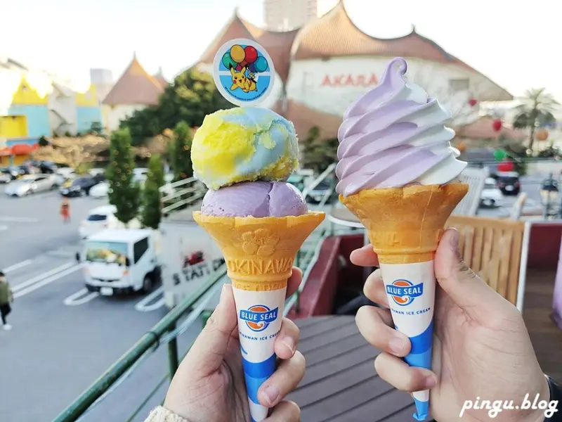 沖繩美食|BULE SEAL 雪藍霜淇淋 美國村店 皮卡丘冰淇淋/紅芋霜淇淋必吃
