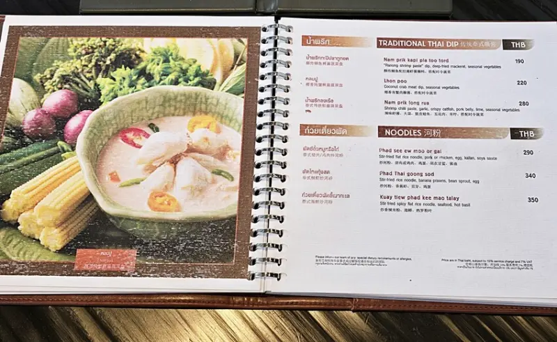 Erawan Tea Room雖然是市中心米其林餐廳,但在餐點價格上並不會很貴,價格從150泰銖起,且大部分菜色都位在200~400泰銖左右,價格跟瓦城差不了多少!!菜單上提供泰文、中文、英文這一點相當貼心,讓我們可以輕鬆點餐,且店內還有會中文的親切人員唷!!