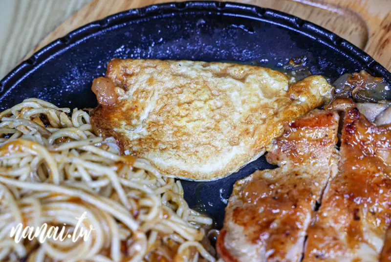 每份排餐都會附上一顆蛋,而且基本都是半熟,如果想要全熟的朋友,記得提前告知哦!出餐前,師傅會在高溫鐵盤上放上新鮮洋蔥和打一顆蛋,隨後又陸續加入麵條、醬汁,以及肉品,站在一旁的我,完全被那股誘人香氣迷的團團轉,迫不期待想大口品嚐。