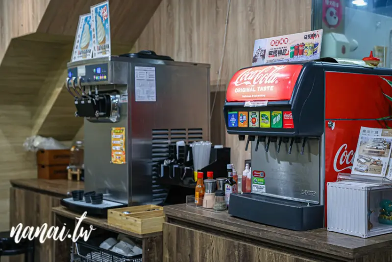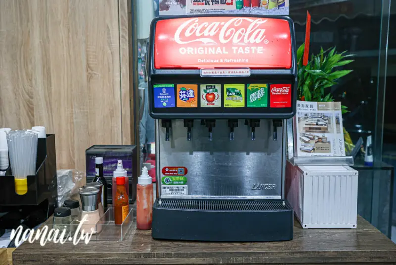 飲料是可口可樂機,有芬達、萊姆氣泡水、蘋果汁、檸檬茶、雪碧、可樂等六種飲品,愛喝飲料的我們,直接喝了兩輪,爽度大爆表。