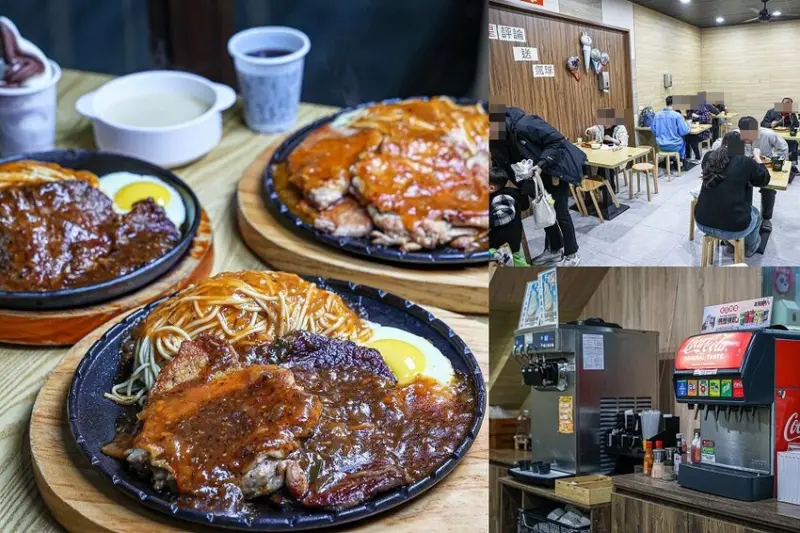 彰化鹿港超人氣的平價牛排店,以大份量雙拼套餐闖出名號,每到用餐時間內用或外帶,幾乎都是滿滿人潮,生意好得嚇嚇叫。雙拼系列共有四種組合,其中最受歡迎的就是牛排拚雞排,六兩重的去骨雞腿排,煎得外皮香酥肉質鮮嫩多汁,再搭配軟嫩有勁的沙朗牛排,不會有那種柴感,更誇張是,麵量完全不手軟,吃起來超有飽足感,老闆完全不怕你吃,而且內用還有霜淇淋、飲料、濃湯免費無限量供應,CP值直接爆棚,難怪平價日客人絡繹不絕。