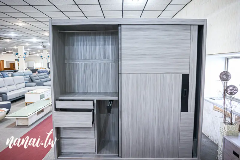 繼續往裡走!這區滿滿的大小衣櫥、矮櫃、餐櫃、收納櫃,通通都是台灣製造,不僅質感好,還有多種款式可選,無論是年輕風、成熟風,還是實木款,都是用親民價格回饋給在地鄉親。