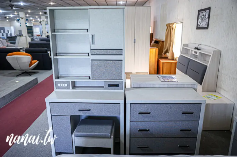 現在的公寓格局越來越小,透天也貴得讓人望而卻步,空間有限的情況下,收納空間就很重要,這組成家專案不僅是床組、餐桌基本家具,連化妝台都有椅子和鏡面收納巧思,衣櫥的吊掛抽屜多樣,完全不浪費每一寸空間,實用性極高,價格也很甜。