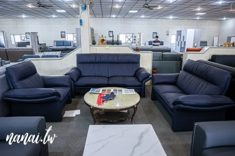 接著來到沙發區,這區款式超多超好挑。有電動旋轉沙發、L型那帕牛皮沙發、愛馬仕風沙發、絨布沙發、雙人座那帕沙發、耐磨皮沙發、科技布面沙發、貓抓皮沙發..等超過百件商品任你挑,無論是大坪數或小空間,現場皆可客製化,想怎麼搭、怎麼配,都可滿足你。