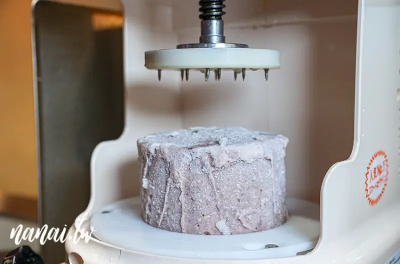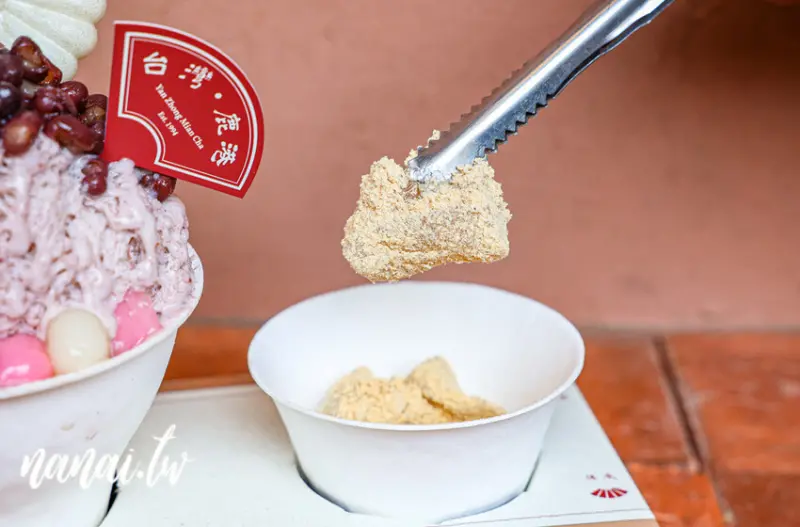一開始我還以為這只是坊間常見的牛奶雪花冰淋紅豆,結果竟然是將蜜紅豆與牛奶直接做成雪花冰磚,從側面看冰磚是帶著紫色調,還能看到紅豆皮的蹤跡,而且每一口的冰磚,像極了古早味冰棒的濃郁滋味。
