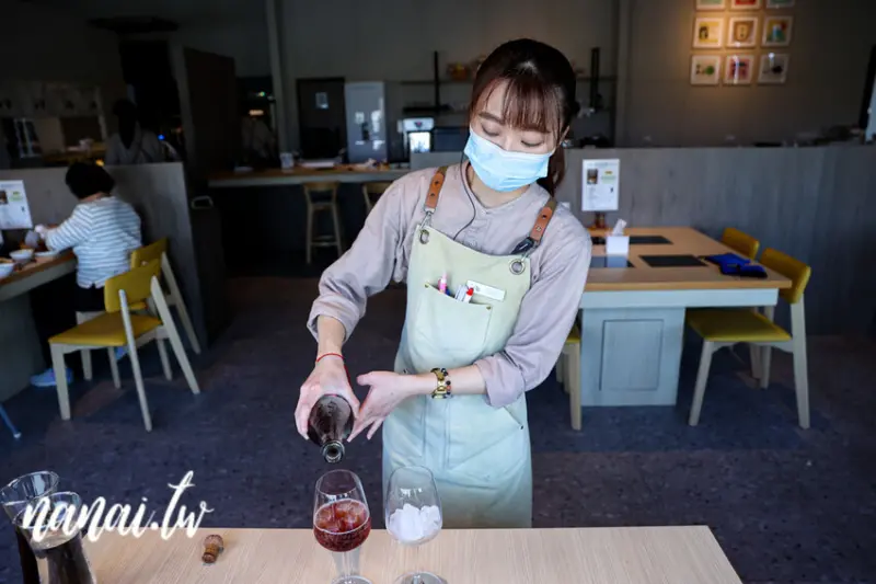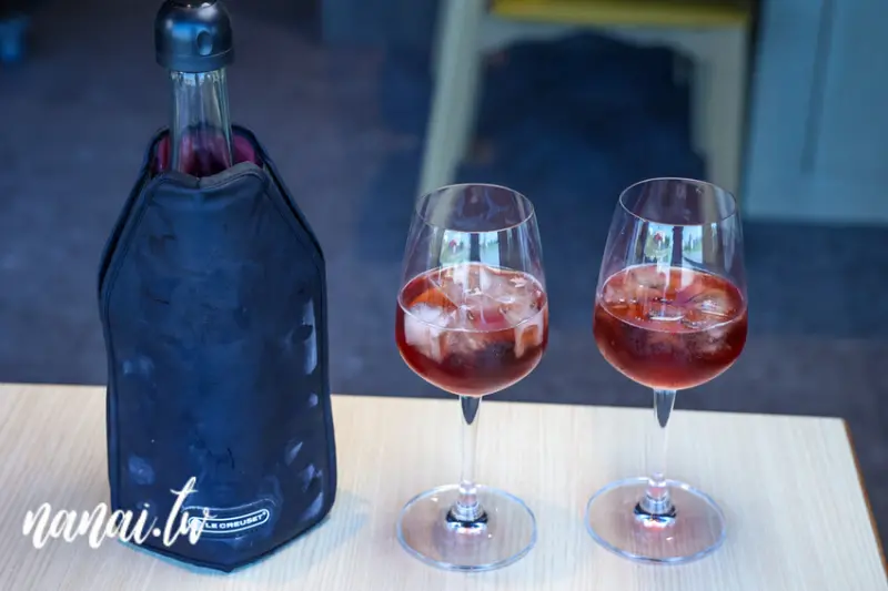 店員在為我們倒完粉紅Gamay氣泡紅葡萄飲後,還會貼心詢問是否需要先幫忙保冰,讓氣泡紅葡萄飲能維持最佳風味,光是這點就很加分。