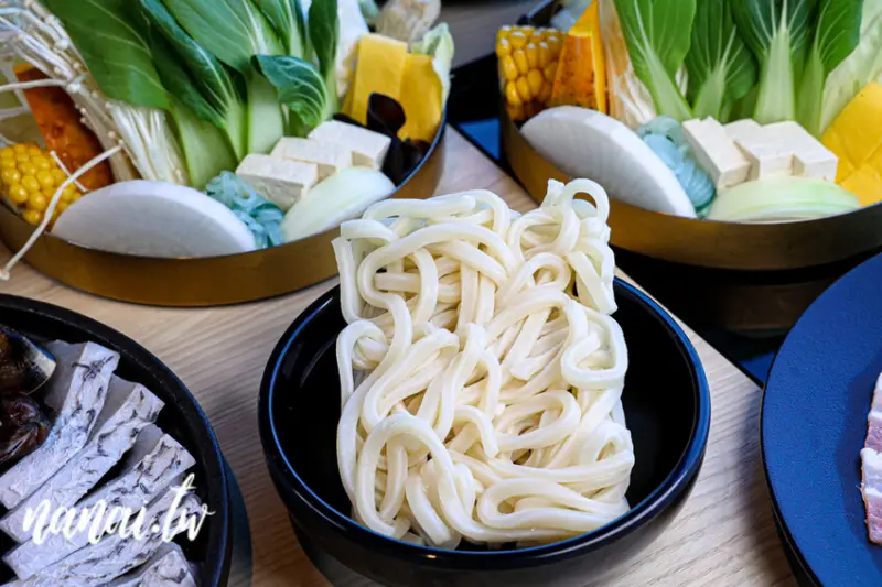 季節野菜皿裡的蔬菜都是純天然食材,沒有加工過的火鍋料,當天提供的有高麗菜、青江菜、金針菇、豆腐、豆包、絲瓜、玉米、蘿蔔、蛋皮等新鮮蔬菜,幾乎全是我愛的,其中豆包和蛋皮充分吸收湯底的精華,入口時滿是蔬菜與醬汁的風味,而且搭配雞白湯更能襯托蔬菜的鮮美,味道超讚。