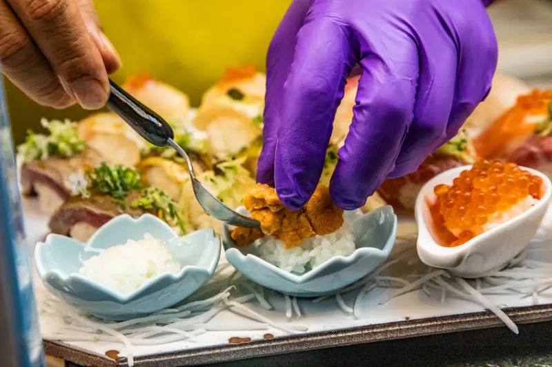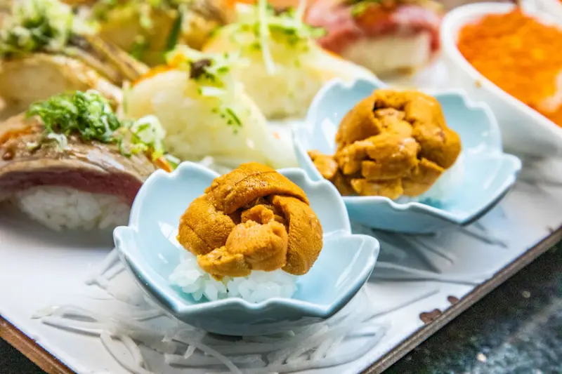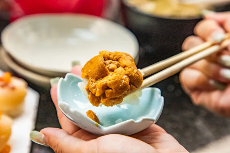 我第一眼就看到那個海膽,真的是給得超級大方,一般外面都是用軍艦卷裝,他們家是直接用小碟子裝著醋飯跟一大坨海膽,吃進嘴裡完全沒有海苔的味道干擾,滿滿都是海膽的鮮甜味!