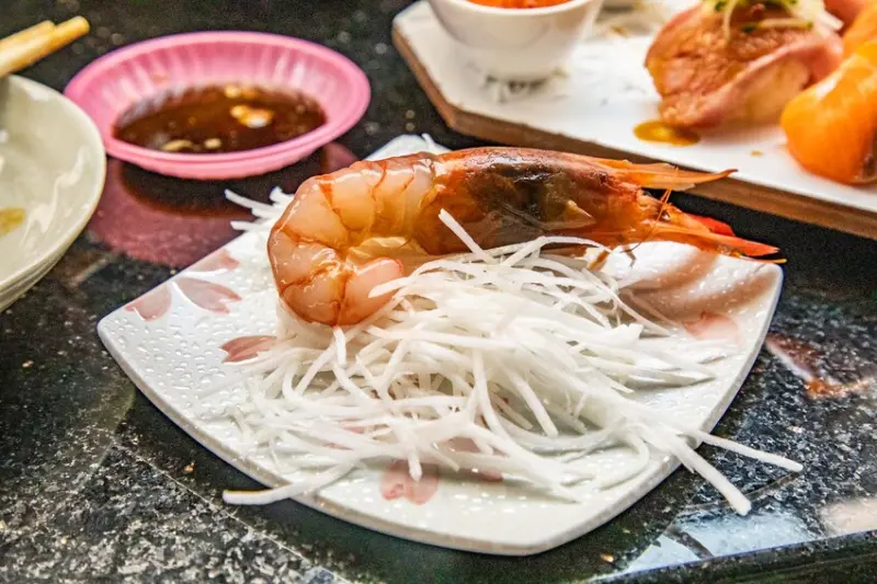 而且他們家打卡還送超大隻的甜蝦,送的也是誠意滿滿,甜蝦很大隻,吃起來就是鮮甜。