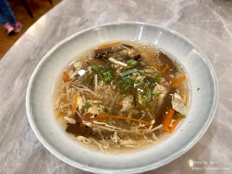 酸辣湯我覺得裡面的料非常多,喝起來帶有一點胡椒的辣度,酸味倒是還好。