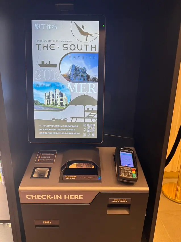 這次在晚上6點左右checkin,櫃檯的服務人員很親切,一進門就主動詢問入住資訊,確認完後在到報到機台輸入資訊領房卡。