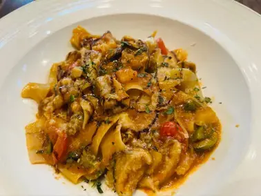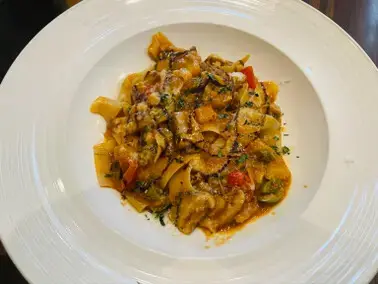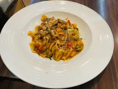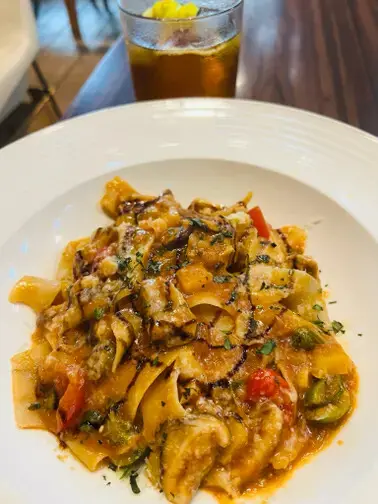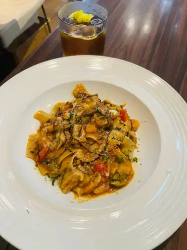 公主點的午餐上桌了,高級風塵女義大利麵,威辣,每日新鮮自製的義大利寬麵,麵非常好吃,可是覺得好像份量有一點點小份,也或許當天走了太多路,公主真的實在太餓了,覺得有點不夠吃 呵呵😂