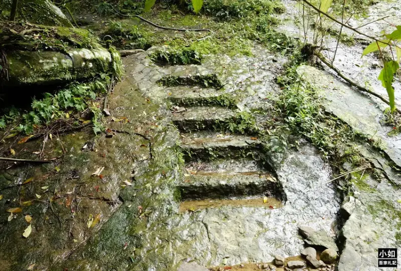 踩著濕滑的石階而過。