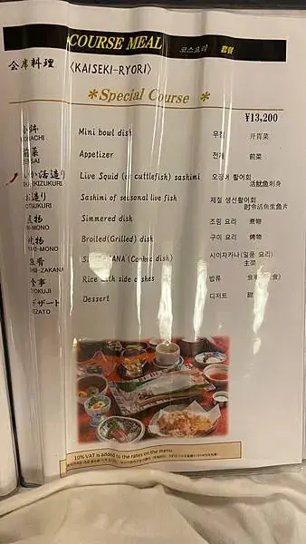 會席料理有不一樣的價錢