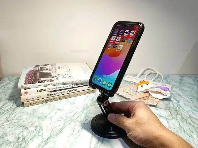 底部的旋轉支架還可以做360度的旋轉,這真的是不錯的設計。和三五好友聚餐時,就可以和好友們分享手機裡的內容和資訊。