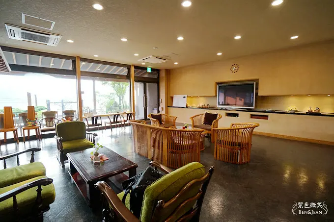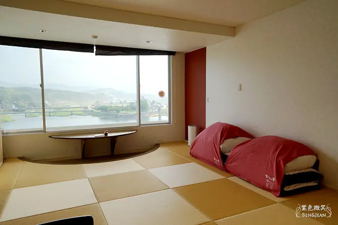 寬敞的大廳,走到底還可以欣賞美麗的三隈川風光