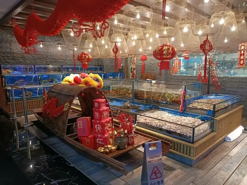 入口處的活體海鮮僅晚餐提供