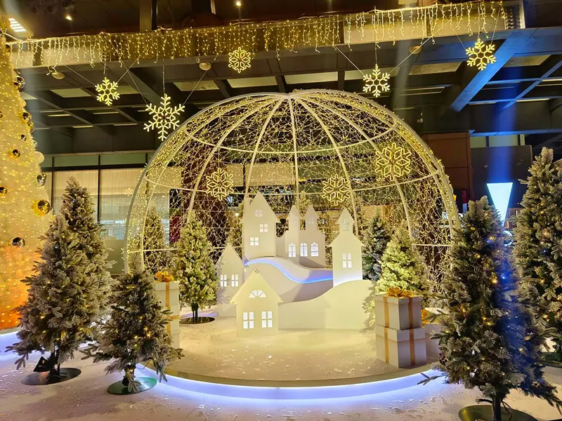 除了白色的聖誕樹,最吸睛的莫過於這個用雪花水晶球設計為藍本所設計出來的圓形冰屋了!除了中間的白色房子,四周還點綴了好幾顆覆蓋白雪的聖誕樹,北國的浪漫元素都囊括在這裡了!