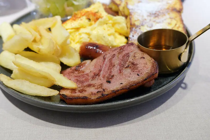 旁邊還有超滑順的美式嫩蛋、現炸黃金脆薯、