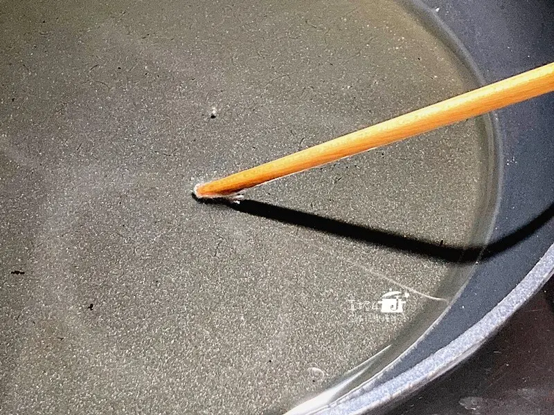 8.鍋中油溫150度C(插入乾筷會有小泡的狀態),放入生餅胚用中火煎到兩面金黃即可出鍋瀝油