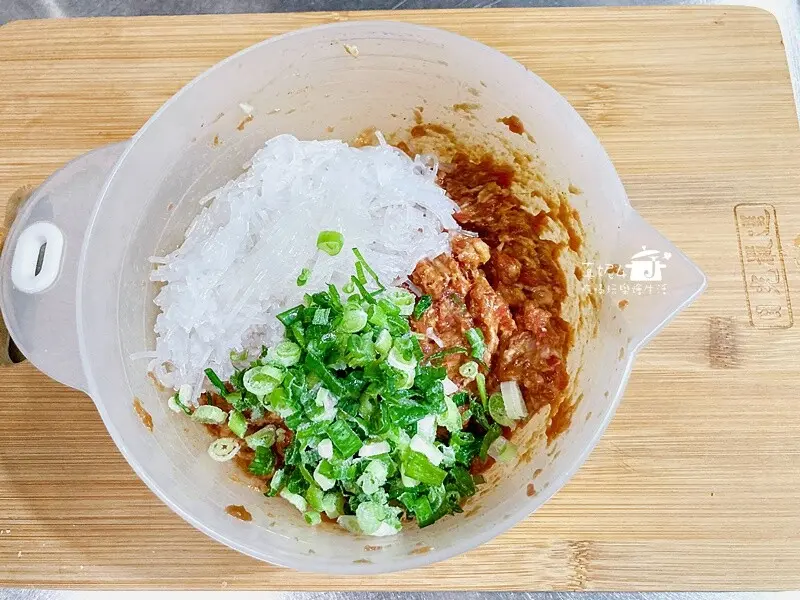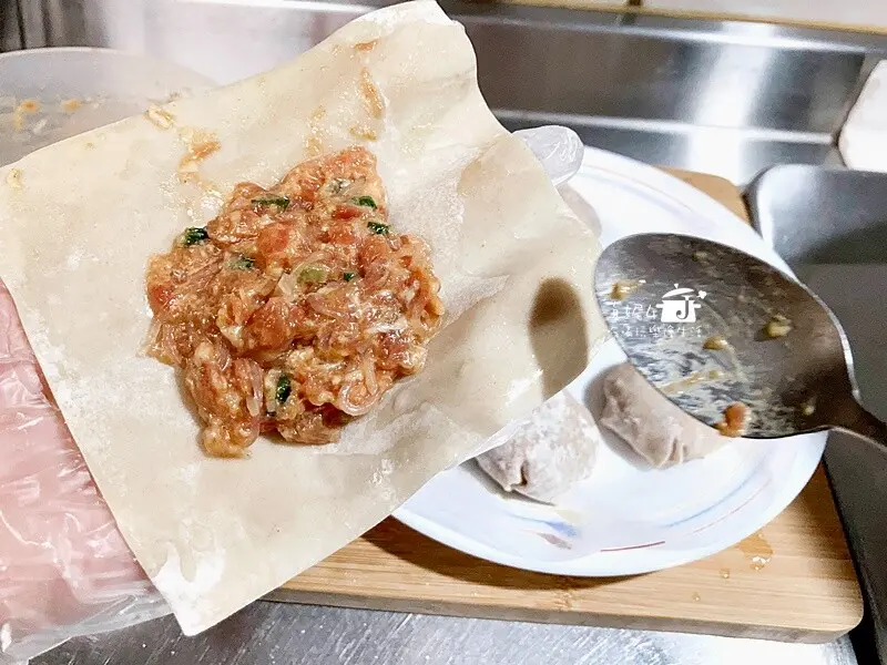 加了冬粉和雞蛋的肉餡,吃起來滑潤同時也增加了飽足感