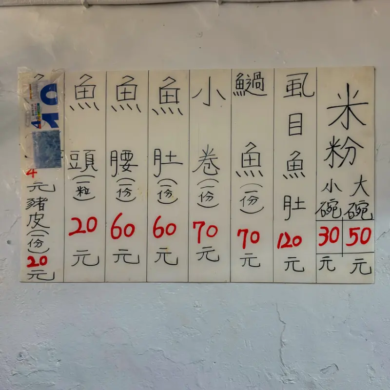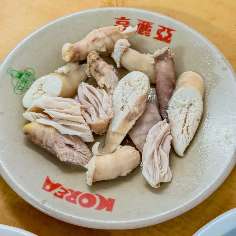 魚肚(60元)跟你一般認知的魚肚(就是那種嫩嫩白白的魚肉)不一樣喔!他們家的是另一種部位的「魚肚」,是內臟類的,應該是魚的胃或是腸道裡面比較粗實、富含結締組織的地方,在高雄、台南一些傳統小吃也會這樣稱呼。這種「魚肚」吃起來比較有嚼勁、偏硬,有點像腱子肉或是筋膜的口感,很適合喜歡咬東西的人。處理得好的話就不會有腥味,還會帶一點自然的膠質香氣,越嚼越香。![]()