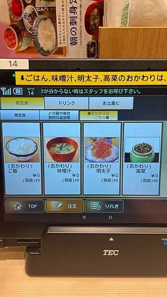無論是白飯,味噌湯,明太子以及搭配飯的高菜都可以續